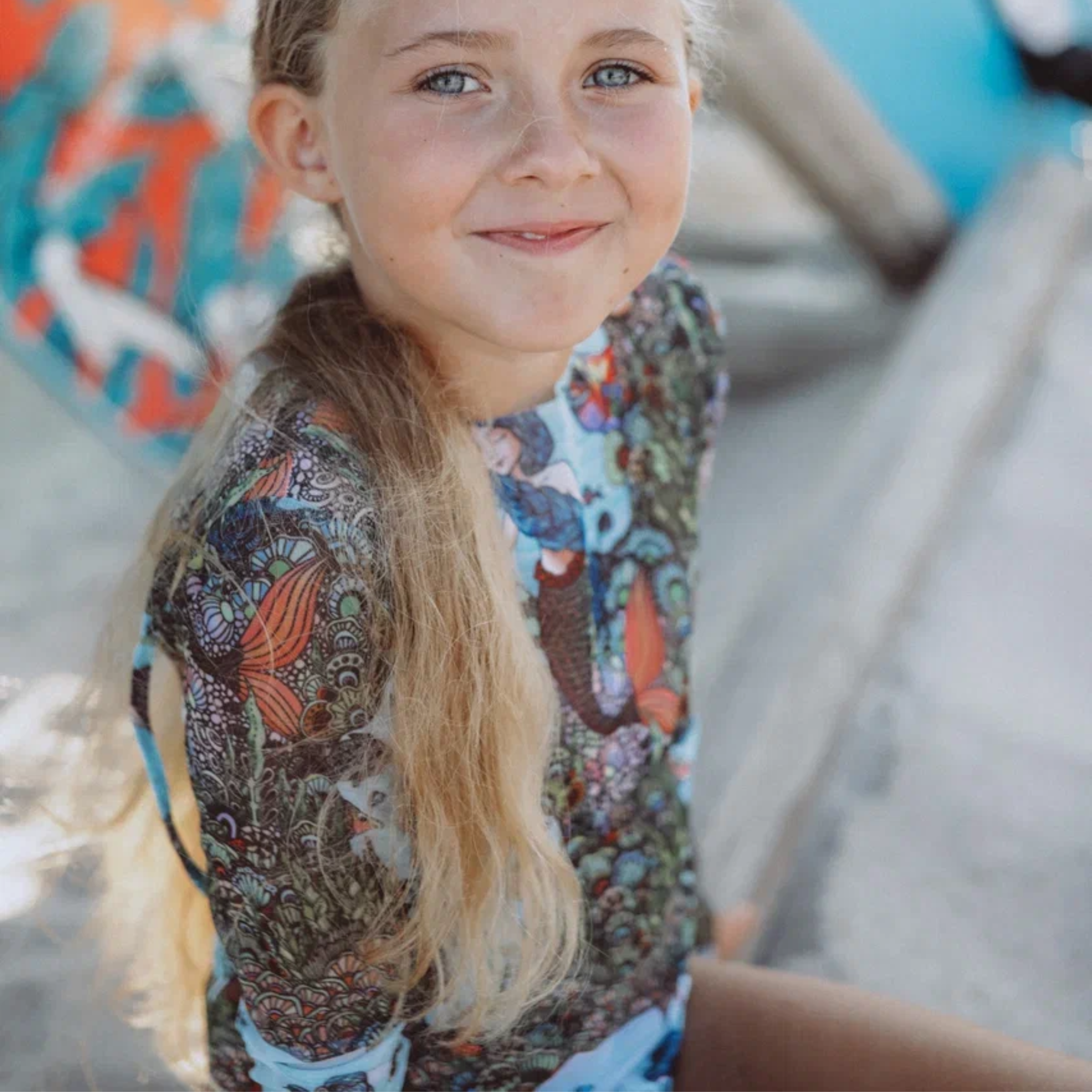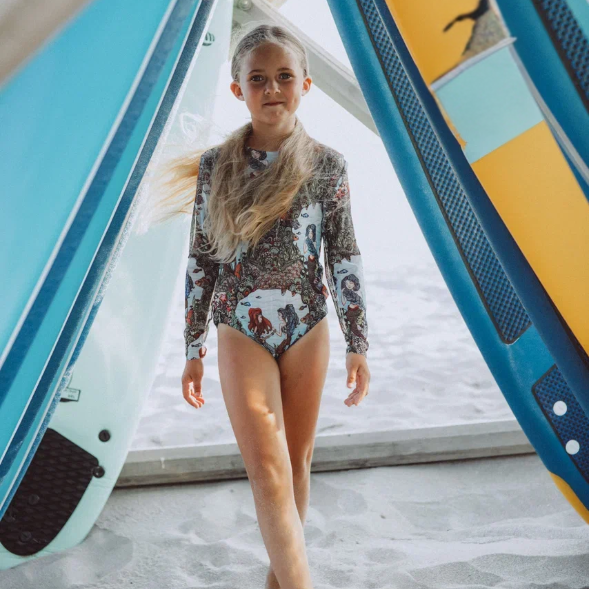 KID's girl's One-piece swimsuit with sleeves MERMAIDS