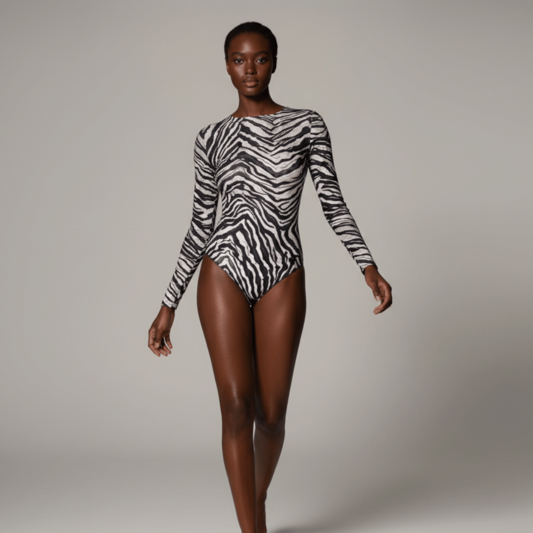 One-piece Swimsuit / Bodysuit with Sleeves / ZEBRA