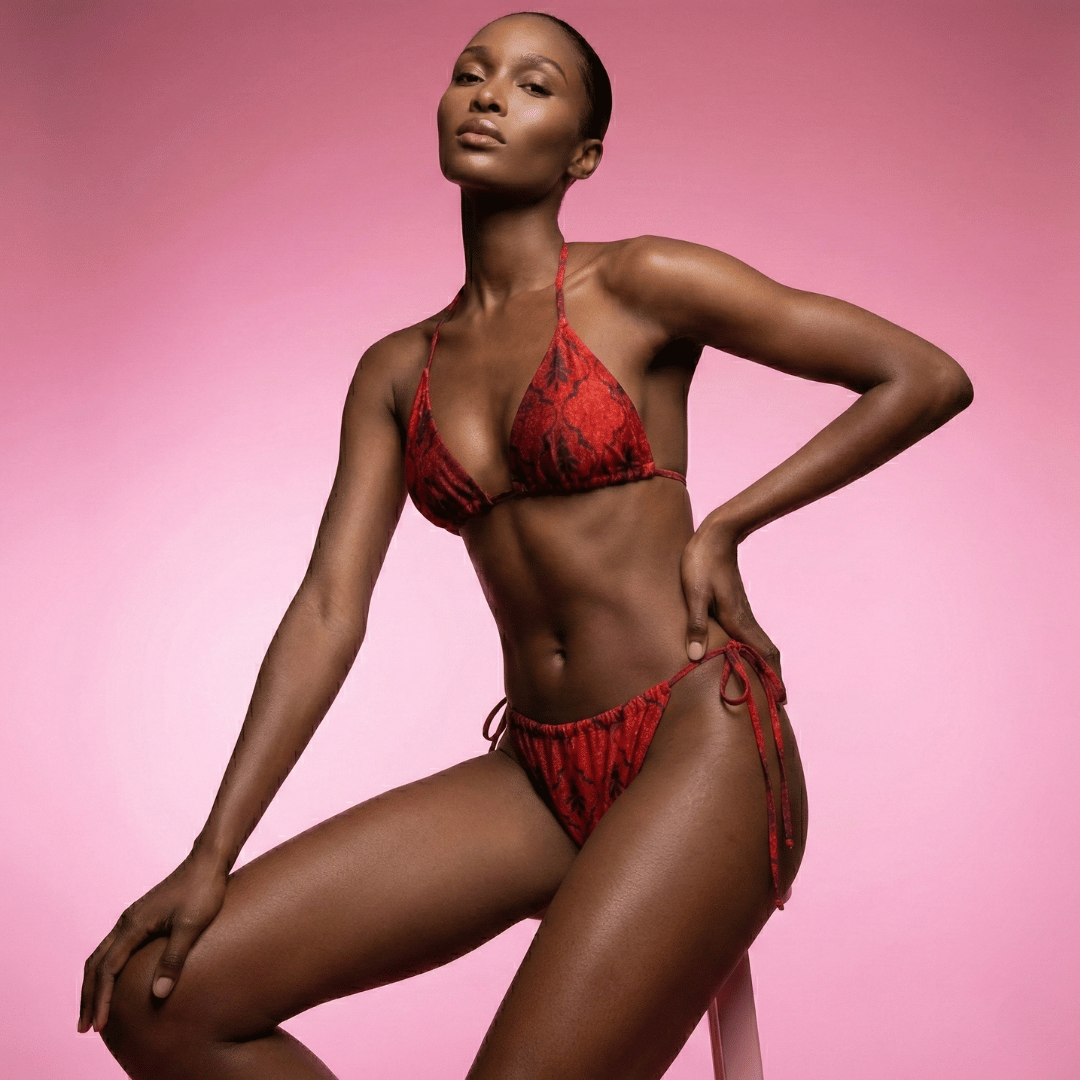 Triangle Top & Tie-Side Bikini Bottom / Red Queen
